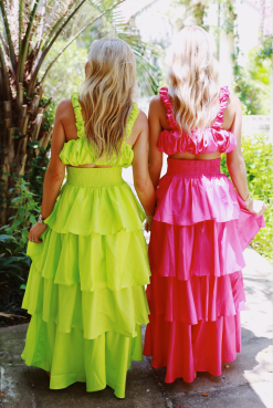 Enter the season of events in the most stunning tiered maxi skirt and crop top set! With a maxi length, tiered detail and gorgeous tight high waist fit, this skirt was made for you! The cropped length top features a bubble design with cute straps. You will turn heads when you make your entrance in this little number!
