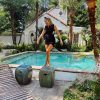 Model is 5’5” with a 34” bust, 27” waist, 36” hips and is wearing a size small.