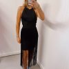 A statement piece like no other! The Broadway Dress features a deep v-neck plunge neckline with a dramatic structured ruffle detailing. It is pleated in all the right places to highlight your figure and make you feel like the star you are! It is a midi to maxi length dress with a front side slit. It has a silver zipper on the lower back. The back is open with one strap across the top to add a little extra support!