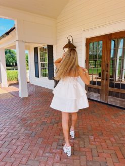 Lightweight Corduroy strapless romper with a cute ruffle detailing! It has elastic at the waist line and the top for a comfortable fit. The waist also has a tie detailing to cinch up the fit.