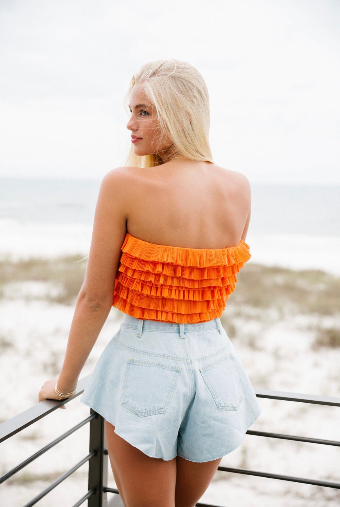Model is 5’5” with a 34” bust, 27” waist, 36” hips and is wearing a size small.