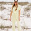 Enjoy a fun, adventurous look with this striped crop top and shorts set, featuring convenient pockets and fun tassel straps on the top! The shorts have an elastic waist band for an easy fit. Also available in tan/white.