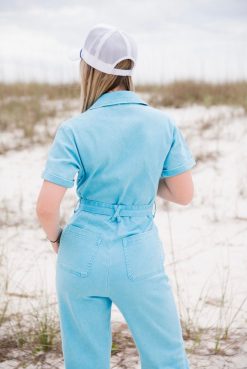Washed down for a faded character, this straight-leg jumpsuit has cuffed short sleeves, utility-inspired pockets, and a removable tie belt to define the waist. Cropped to the perfect ankle length, it’s an effortless one-and-done outfit.