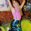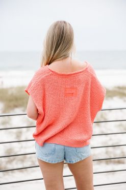 Our Lena knit top is a loose fit, slouchy, slightly cropped sweater featuring v-neckline, sleeveless, and solid front and back patch.