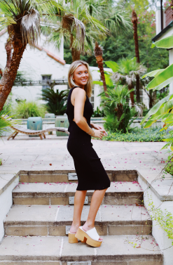 Sleeveless midi sweater dress with a round neckline and cutouts. Model is wearing a size small!