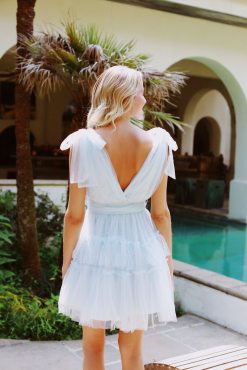 Tiered mini dress with pearl studs on top of the mesh layer!