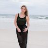 A must-have for stylish occasions, this Swiss dot mesh tulle dress features a sleeveless design, ruffle shoulder detail, and a tiered maxi skirt. The hidden lining ensures comfortable wear. Flaunt your sophisticated sense of style and make a statement!
