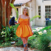 Mini dress with a corset fit top and a fitted ruched bottom. Model is wearing a size small. Has a zipper back closure!