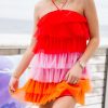 Swiss Dot Strapless Tier Peplum Ruffle Top With Smocked Back And Ruffled Hem