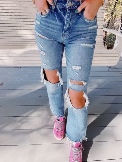 Mid rise cropped straight leg denim jeans! These are a non-stretch denim.