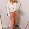 Just perfect for an edgy look, this cargo jeans can be styled to suit any preference from streetwear to going out. Features elasticized waistband at the back, slanted pockets, ankle-length hems. Tie straps included.