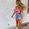 Full sequin tank top with a feather trim detailing and a zipper closure.
